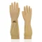 Luva de segurança confeccionada em borracha natural (látex) super reforçada; sem revestimento interno; antiderrapante na face palmar, nos dedos e na ponta dos dedos.