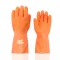 Luva de segurança confeccionada em forro de fibras naturais tipo interlock, totalmente revestida em látex corrugado na palma, pontas dos dedos e dorso, látex liso no punho.