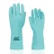 Aplicações: Indicada para trabalhos gerais leves e médios, protegendo o trabalhador contra agentes químicos e solventes, cáusticos, óleos e gorduras especialmente animal, detergentes, diesel, gasolina, querosene, ceras, álcool, amônia e pesticidas. Atividades como pintura, aplicação de vernizes, trabalho de higienização e limpeza, manuseio de carnes e alimentos (açougue, sala de cortes e outros). Pode ser utilizada sobrepondo luvas resistentes a corte ou térmicas para uma proteção impermeável.